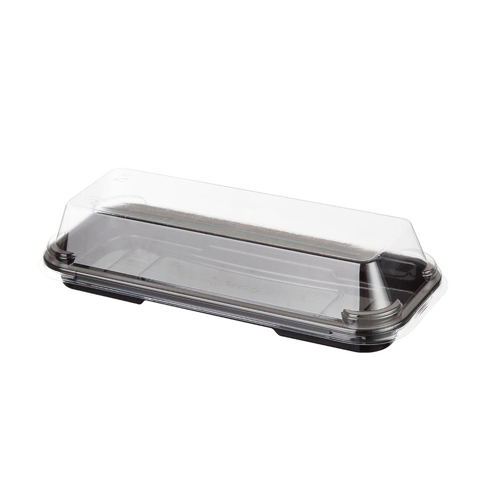Компания " Пакме" представляет Вашему вниманию контейнер под пирожное и суши С- 020 — это удобная и практичная упаковка для хранения и транспортировки продукта, изготовленная из (ПЭТ). Имеет прямоугольную форму с внешними размерами 219х89х18 мм в одну секцию. Контейнер выполнен в черном цвете. Идеально подходит для использования в ресторанах, суши-барах и на выездных мероприятиях.