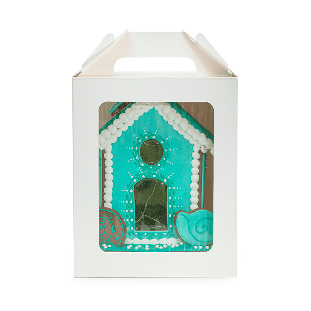 Ручка за которую удобно держать упаковку, при необходимости складывается таким образом, что обеспечивает возможность штабелирования коробов друг на друга без риска повредить кулич внутри.