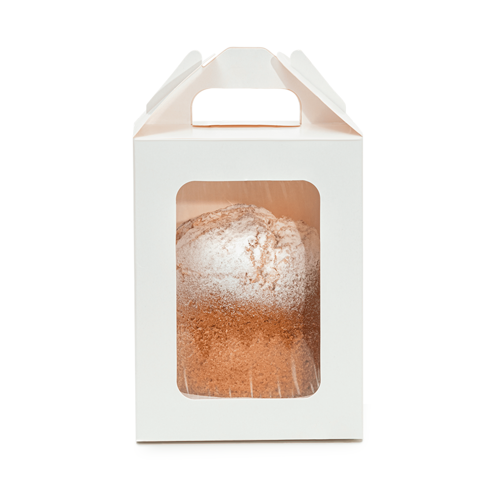 Ручка за которую удобно держать упаковку, при необходимости складывается таким образом, что обеспечивает возможность штабелирования коробов друг на друга без риска повредить кулич внутри.