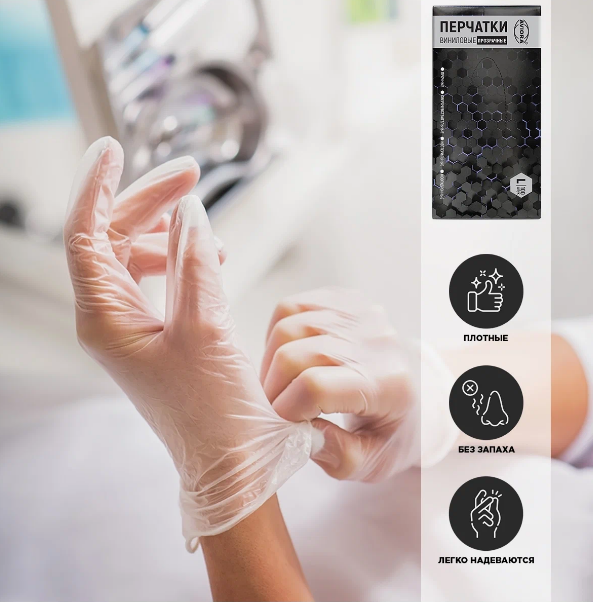 Виниловые перчатки изготавливают из поливинилхлорида (синтетического материала). По сравнению с натуральными латексными перчатками они обладают меньшими аллергенными свойствами. Используются для хозяйственных работ, при проведении парикмахерских и косметологических процедур, на пищевых производствах.Предназначены практически для всех видов работ в области индустрии красоты, пищевой промышленности, сфере обслуживания и хозяйственно-бытовой деятельности.