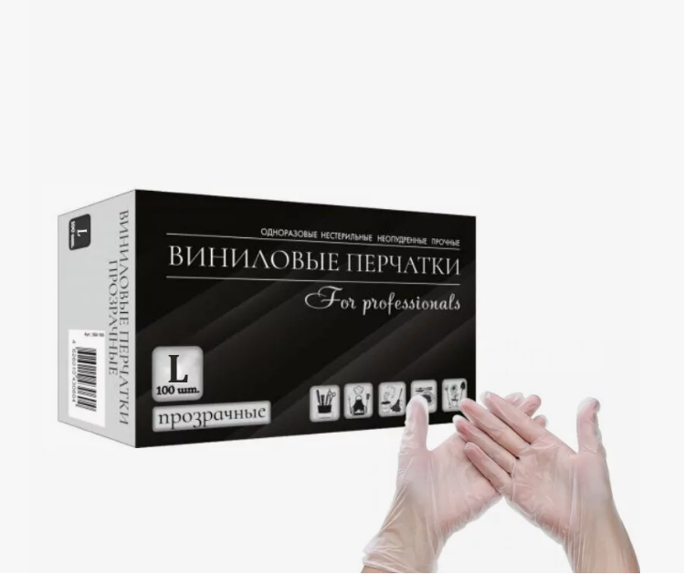 Перчатки виниловые прозрачные неопудренные L 100 шт.