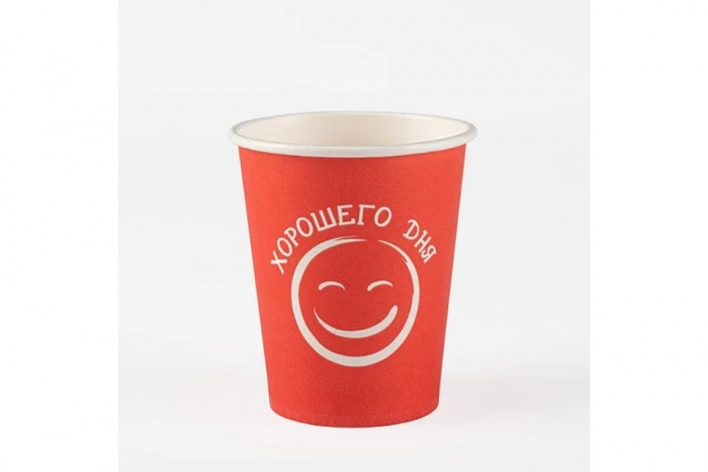 Стакан бумажный "Хорошего дня" ( малиновый ) внутри белый 250 мл.