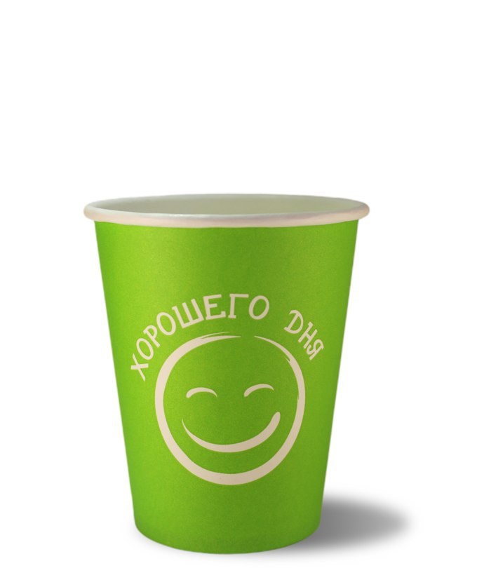 Стакан бумажный "Хорошего дня" (мятный) внутри белый 250 мл.