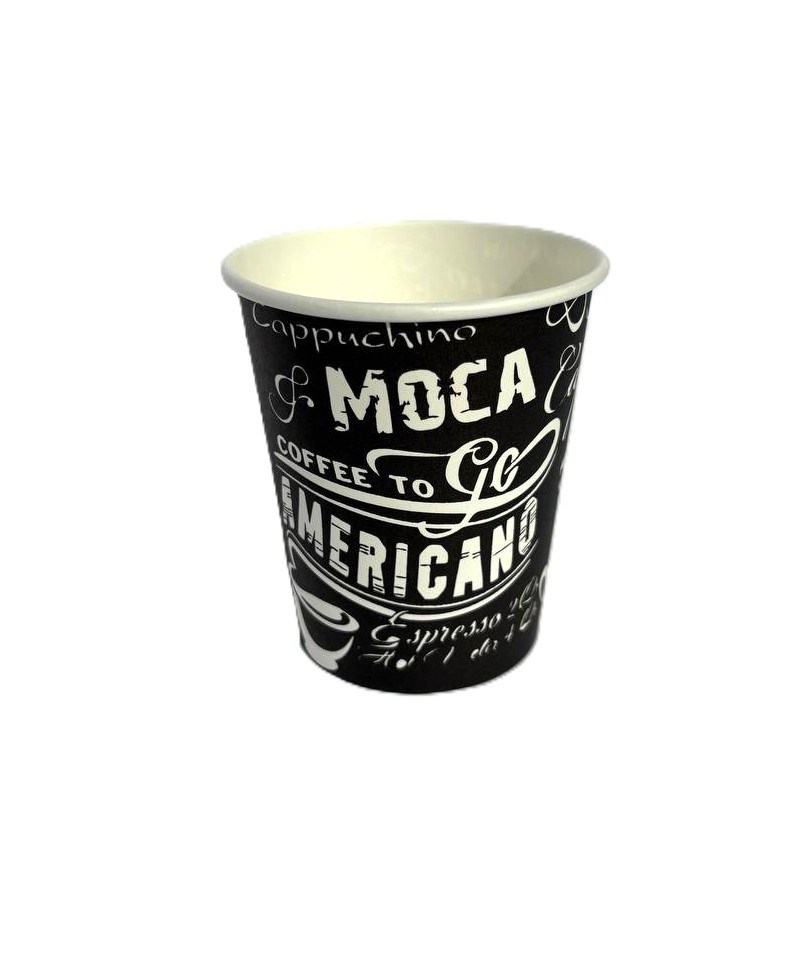 Однослойный бумажный стакан 250 мл изготавливается из немелованного или мелованного целлюлозного картона высокой плотности (от 225 г/м2. ) с покрытием PE-пленкой. Не деформируется при использовании и не размокает от воды. Используется для холодных и горячих напитков.