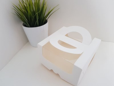 Кондитерская упаковка из белого целлюлозного картона надёжно сохранит содержимое от пыли, влаги и механических воздействий. «Панорамное окно» позволяет рассмотреть десерт ,не вынимая его из коробки и не нарушая его форму.