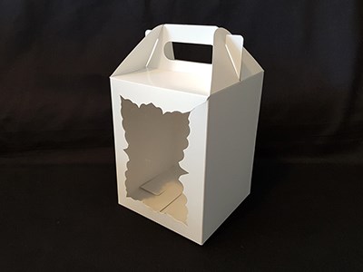 Картонные коробки для куличей имеют эргономичный дизайн. Упаковка легко и быстро собирается. Конструкцией предусмотрена удобная ручка, что обеспечивает простоту переноски выпечки. Габаритные размеры изделия вместе с ручкой — 150х150х260 мм.